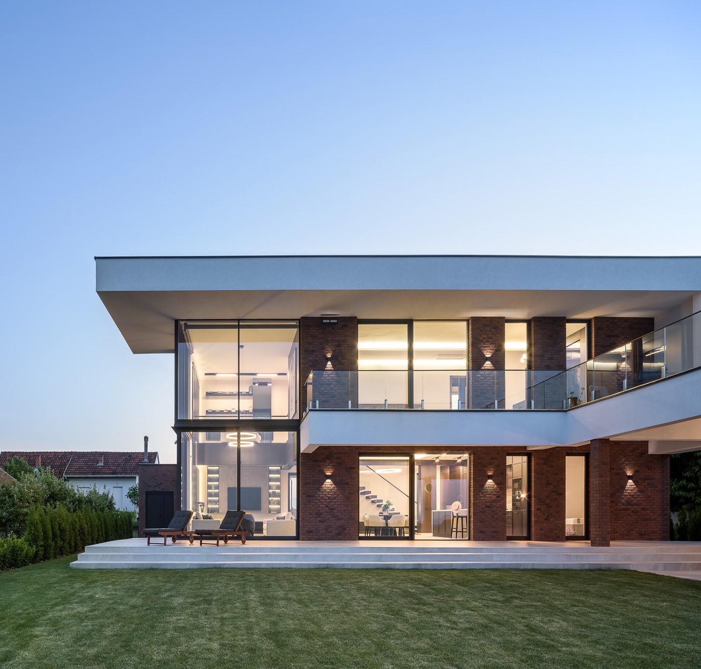 IZVODJENJE RADOVA NA OBJEKTUUgradnju ciglice na objektu vršila je ekipa NOVA BRICK-a. Radilo se po principu stiropor distancera od 10mm, koji su razdvajali cigle i održavali ravan vertikalni sloj za fugovanje. Odabir projektanta je bila antracit fuga koja se ukopila idealno uz tamnu boju stolarije i dodala na upečatljivosti same ciglice. Površina koju je cigla prekrivala na objektu je 350m2 i oblagane su prednja i zadnja strana, obe bočne strane, kao i garaže, letnjikovac i ograda. Više ovom objektu možete pročitati na portalu www.gradnja.rs